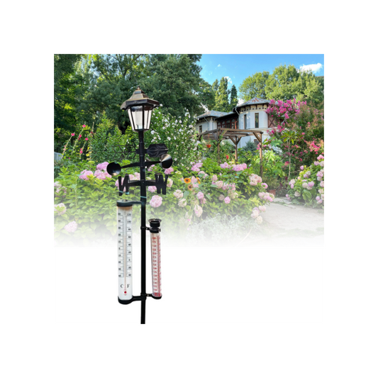 Lampa solara cu statie meteo, termometru, directia vantului, indicator ploaie,158cm