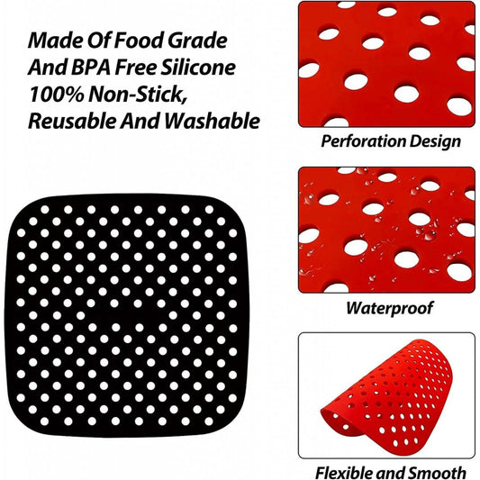 Set 2 suporturi,tavite copt pentru friteuze,silicon,rezistente la caldura,negru,rosu 19 cm
