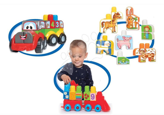 Joc de construit trenuleț cu tractor și animăluțe Superpack 3in1 , cuburi mari cu imprimeu de la 18 luni