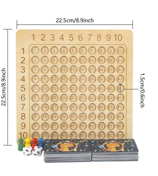 Joc educativ din lemn Masa de inmultire cu carti, zaruri si pioni, invatand sa numere