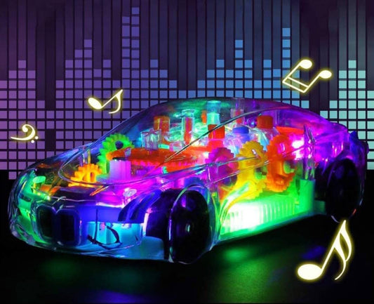 Mașină transparentă 3D cu rotație de 360 de grade , cu lumină și sunet pentru copii