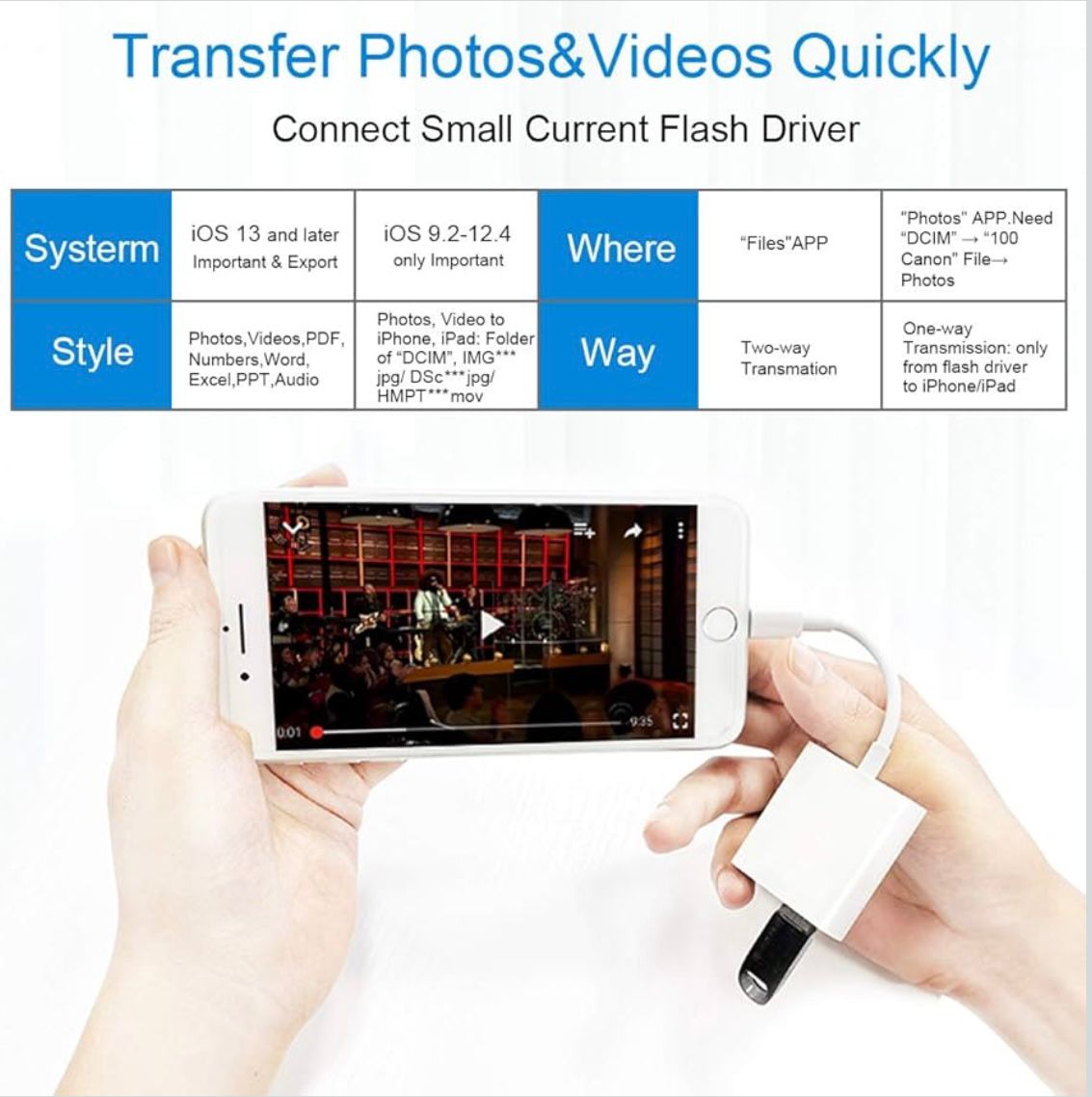 Adaptorul Camera Connection Kit cu conectori Lightning/USB-A va permite sa va incarcati iPhone-ul sau iPad-ul si sa extrageti fotografii si videoclipuri. Cand conectati adaptorul la dispozitiv, acesta va deschide automat aplicatia Fotografii, de unde puteti importa cu usurinta media selectata. In cazul iOS 13, adaptorul va permite si sa afisati intregul continut al cardului SD sau al unitatii flash USB si, astfel, sa transferati, sa copiati si sa redati orice fisiere. Adaptorul functioneaza si ca sursa de alimentare. Datorita acestui fapt, puteti conecta periferice cu o interfata USB, cum ar fi hub-uri, adaptoare USB/Ethernet, interfete audio/MIDI, CompactFlash, SD, carduri microSD si multe altele.