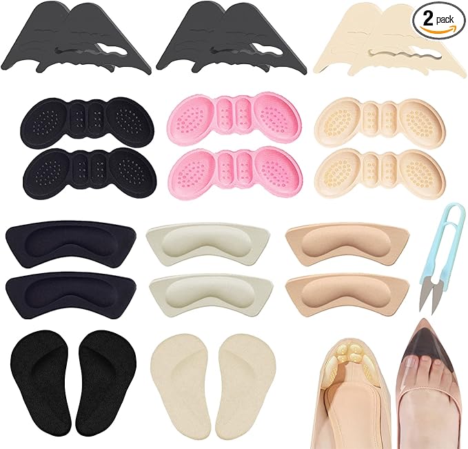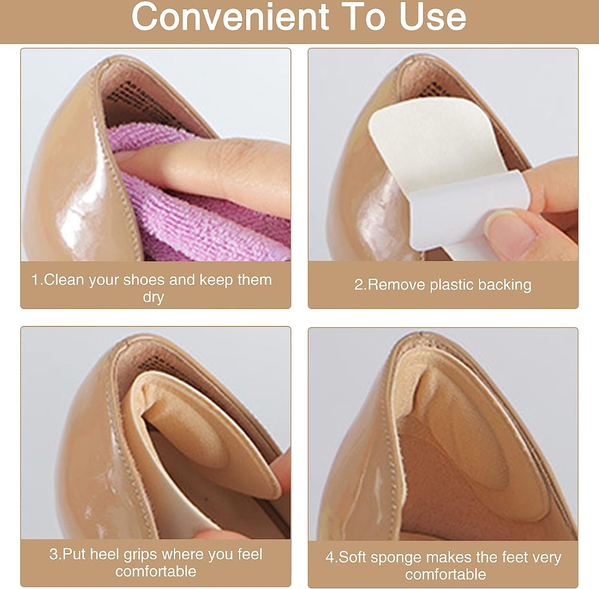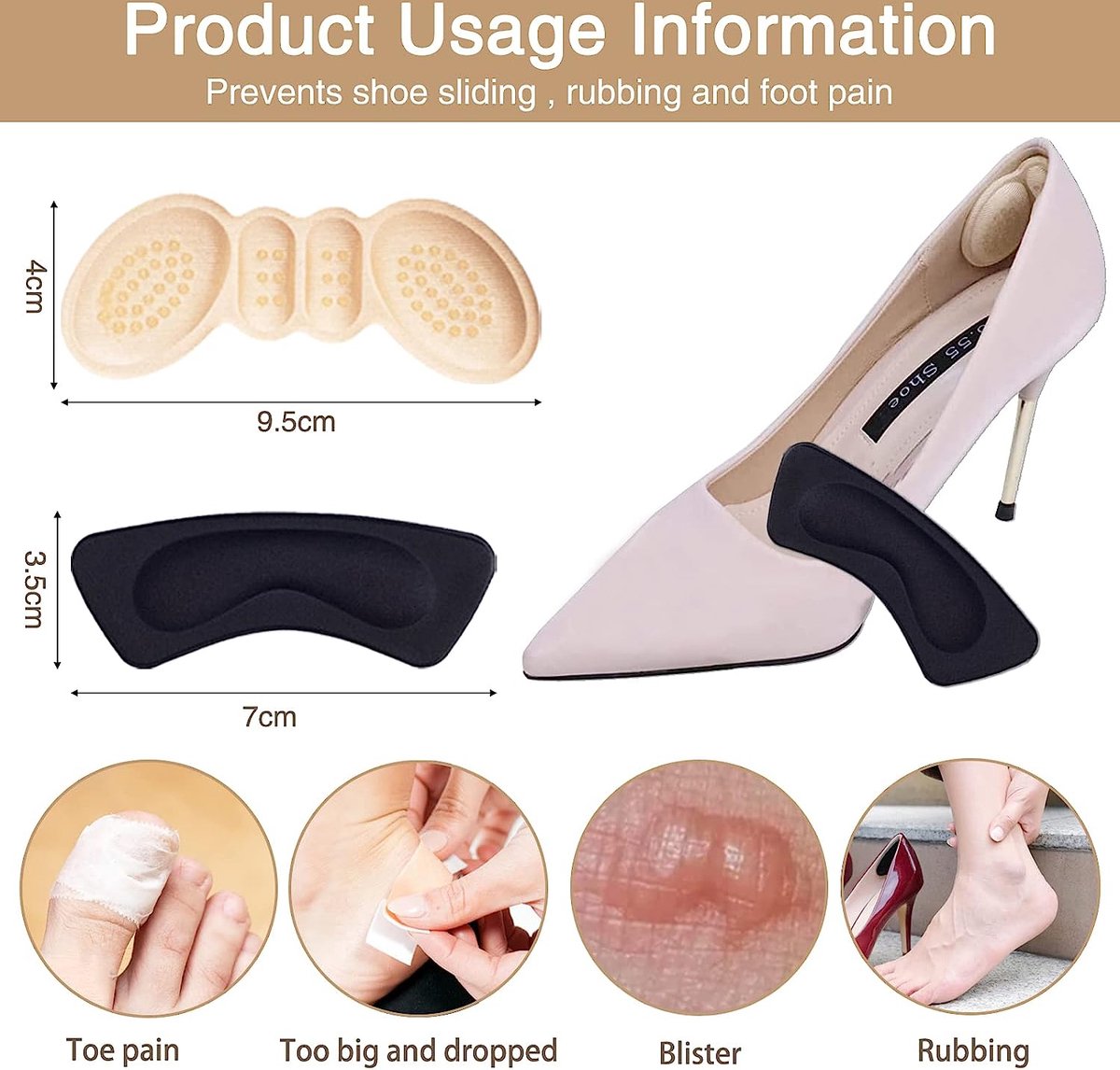 Acești pantofi cu pernă pentru călcâi oferă ușurare în timpul mersului și împiedică frecarea piciorului în pantofii, tocuri sau pantofi (jos).