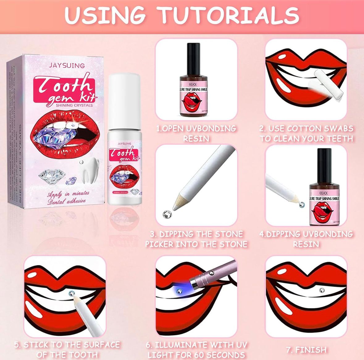 Kit de bijuterii dentare, cristale colorate si albe,Kit de pietre prețioase pentru dinți reflectorizante DIY