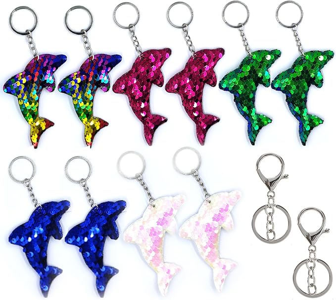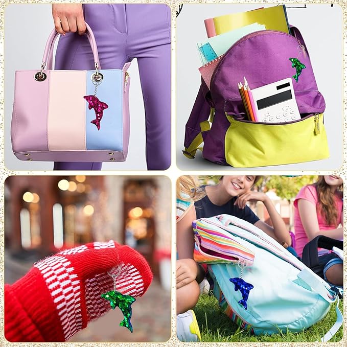 Pachet de 10 brelocuri cu delfini, brelocuri pentru fete, brelocuri cu paiete, breloc pentru copii