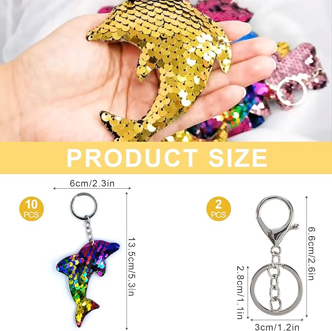 Aplicație largă: pandantivul cheie cu delfin are o dimensiune potrivită și este ușor de transportat. Îl puteți agăța pe cheile de la ușă, genți de mână, rucsacuri, poșete și cheile mașinii. Brelocul cu paiete este o decorațiune unică care atrage mai mult. Este, de asemenea, un pandantiv bun pentru a atrage atenția.