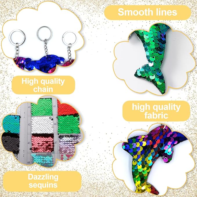 Design unic: brelocurile sunt concepute cu paiete strălucitoare față-verso, partea din față și din spate a fiecărui breloc sunt țesute cu o combinație de paiete în culori diferite, fiecare parte putând străluci la soare, un aspect fermecător și culori strălucitoare pot adăuga un farmec încântător articolelor dvs.