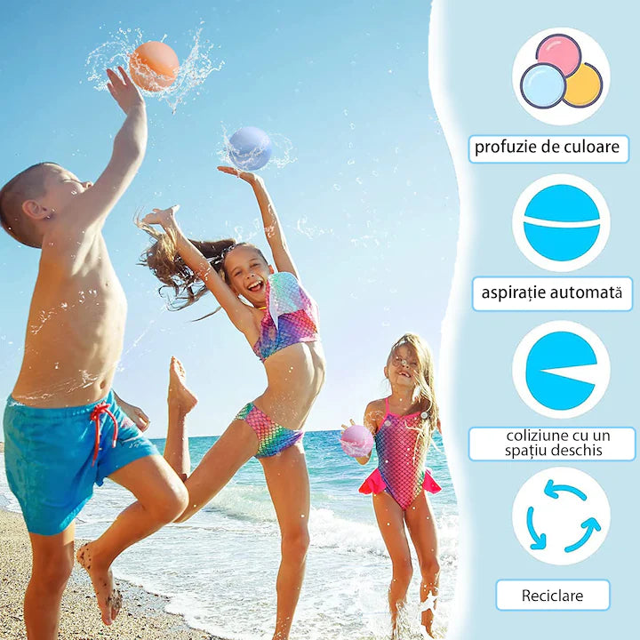 - Alegerea perfecta pentru un joc de vara in aer liber: deschideti-va umbrela, respirati aerul marii si simtiti ca nisipul scrasca intre degetele de la picioare. Nu ai ce face? Singurul lucru care lipseste din aceasta scena este accesoriul esential de plaja - baloanele cu apa!