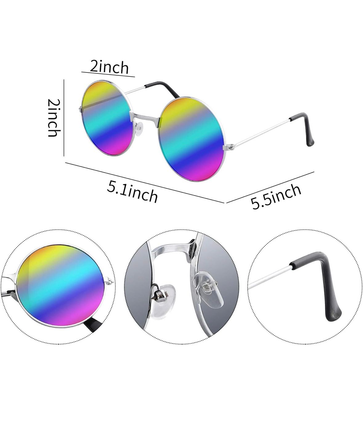 Set de costume hippie cu 6 piese, coliere cu semnul păcii, bentiță cu flori, ochelari de soare hippie, bentiță vopsită pe cravată, accesorii hippie din anii '60 pentru femei, bărbați, cupluri, prieteni